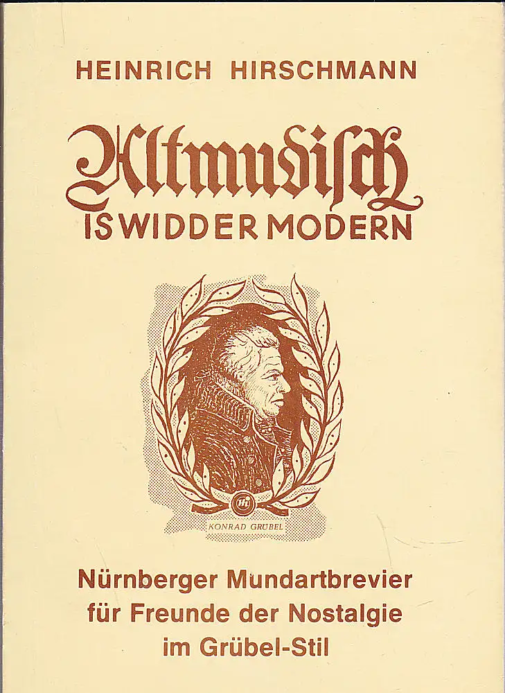 Hirschmann, Heinrich: Altmudisch is widder modern Nürnberger Mundartbrevier für Freunde der Nostalgie im Grübel-Stil.