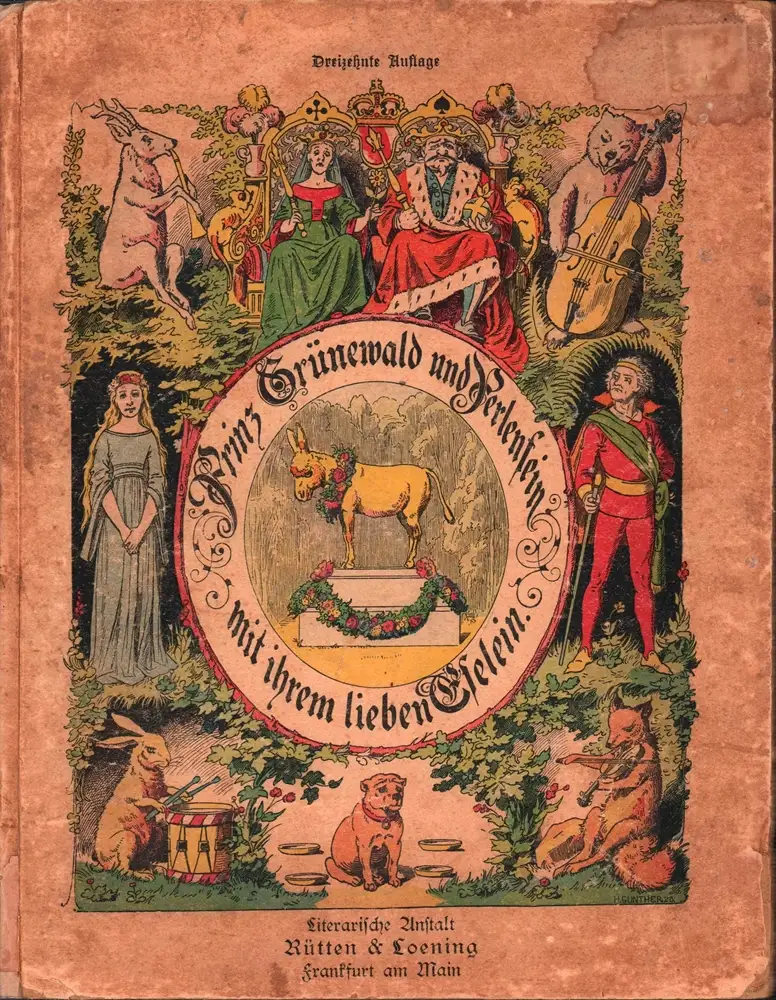 Titel: Prinz Grünewald und Perlenfein mit ihrem lieben Eselein. Ein Bildermärchen, verzeichnet und gereimt von dem Verfasser des "Struwwelpeter". (13. Aufl.)