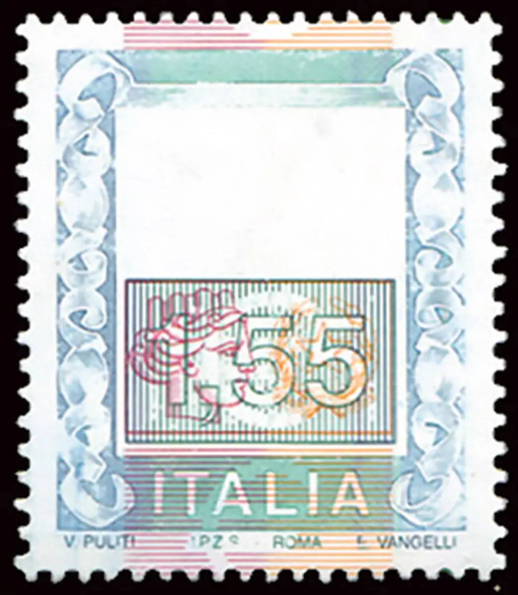 Hohe Eurowerte 1,55 Sorte Mitte verschoben Vollgummi - MHN - - Hohe Eurowerte 1,55 Nr. 2581 mit stark nach unten verschobenem Rot- und Gelbdruck (Mitte) so dass sich die Syrakusana mit der Zahl 1,55 (Sass. spec. Nr. 2216 Ad) - auffällig Cod. 822/14
