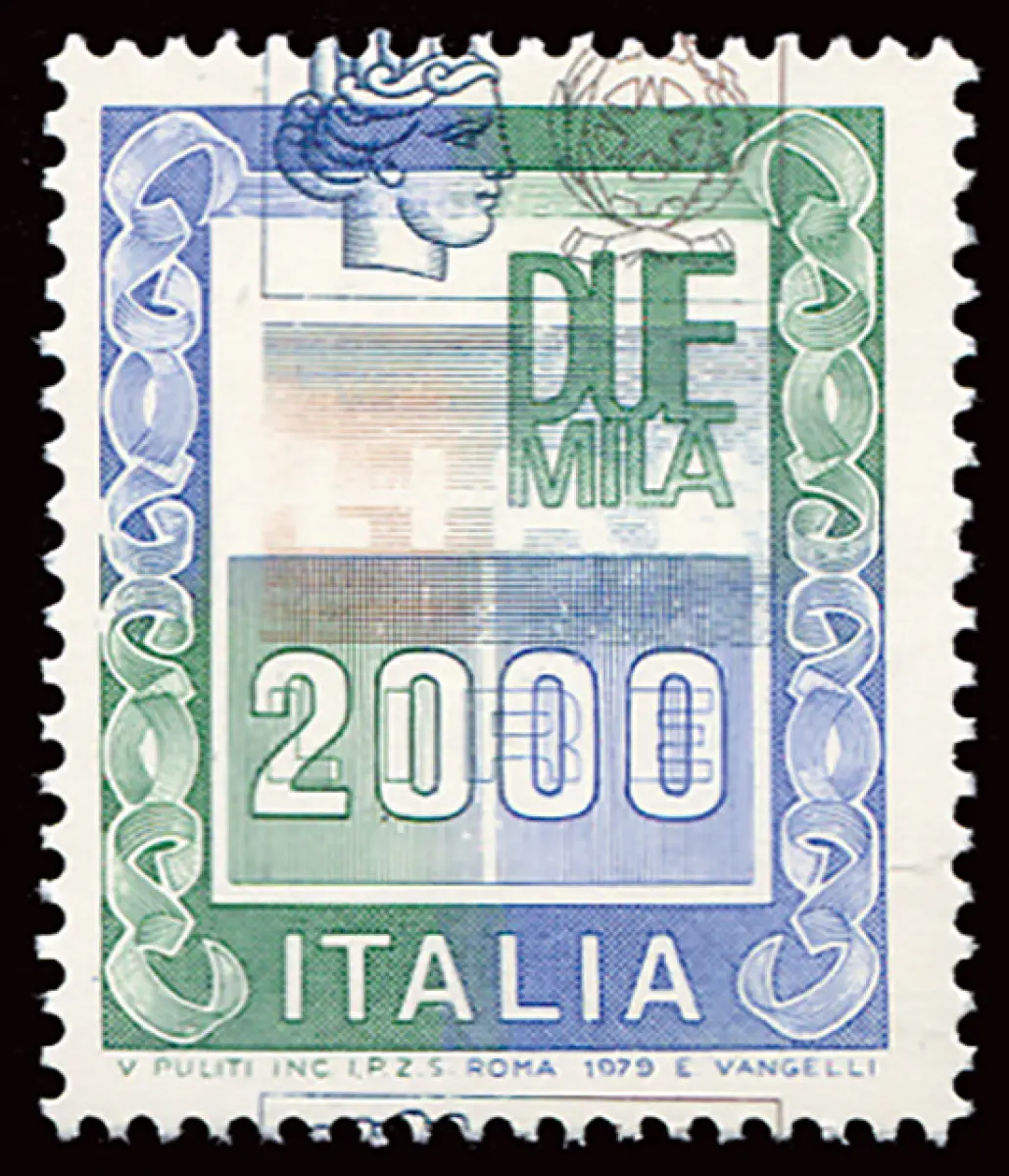 Hohe Werte Lire 2.000 Sorten Bildnisse in hohem Vollgummi MNH - Hohe Werte Lire 2.000 Nr. 1439c Druck der Mitte (mit Bildnis) stark über 5 mm nach oben verschoben. - Ungewöhnlich bei so stark relevanter Verschiebung Cod. 574/15