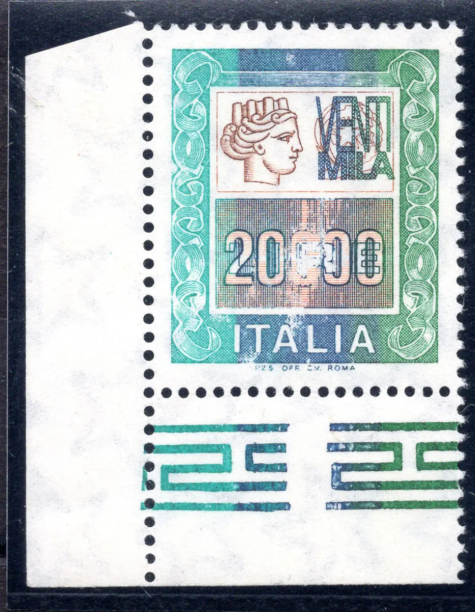 MNH - Vollgummi - Hohe Werte Lire 20.000 Nr. 1442B mit der zweiten 0 von 20000 durch fehlerhafte Tinte des Druckklischees verwirrt - ungewöhnliche gelegentliche Sorte Cod. 847/17