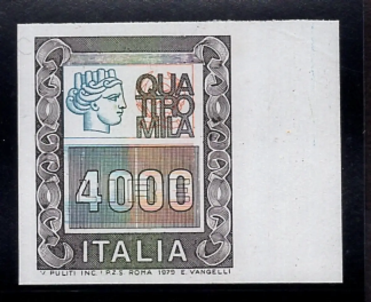 MNH - Vollgummi - Hohe Werte Lire 4.000 Nr. 1441a ungezähnter Folienrand rechts, neuer perfekter Vollgummi - Selten, nicht zitiert Cod. 3430/WEB