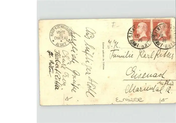 Hohkoenigsburg Haut-Koenigsbourg Orschwiller postalisch gelaufen 1921-1965 Alte Ansichtskarte Postkarte Elvigtle