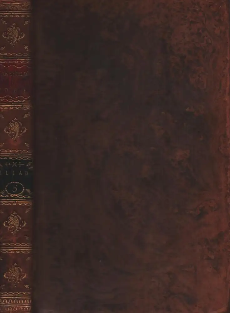 Enthält die Bücher 17-21. Die Tafel zeigt Achilles' Schild. S. 172-181 [Description of] "The shield of Achilles, devided into its several parts". - Kanten etwas berieben, Vorsätze mäßig stockfleckig, die Tafel u. die ihr gegenüberliegende Seite mit Abklatsch des kräftigen Kupferstichs