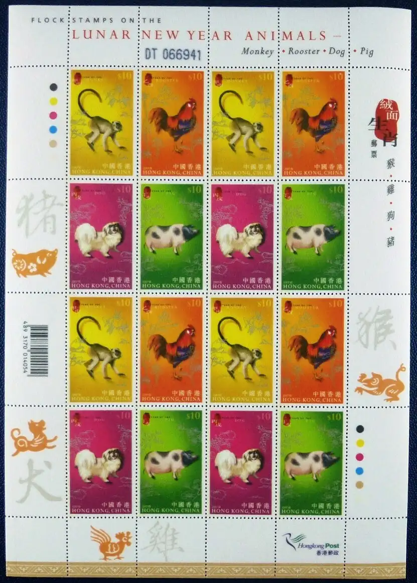 Hongkong 2007 Neujahr Chines. Tierkreiszeichen Filz 1411-1414 Kleinbogen MNH