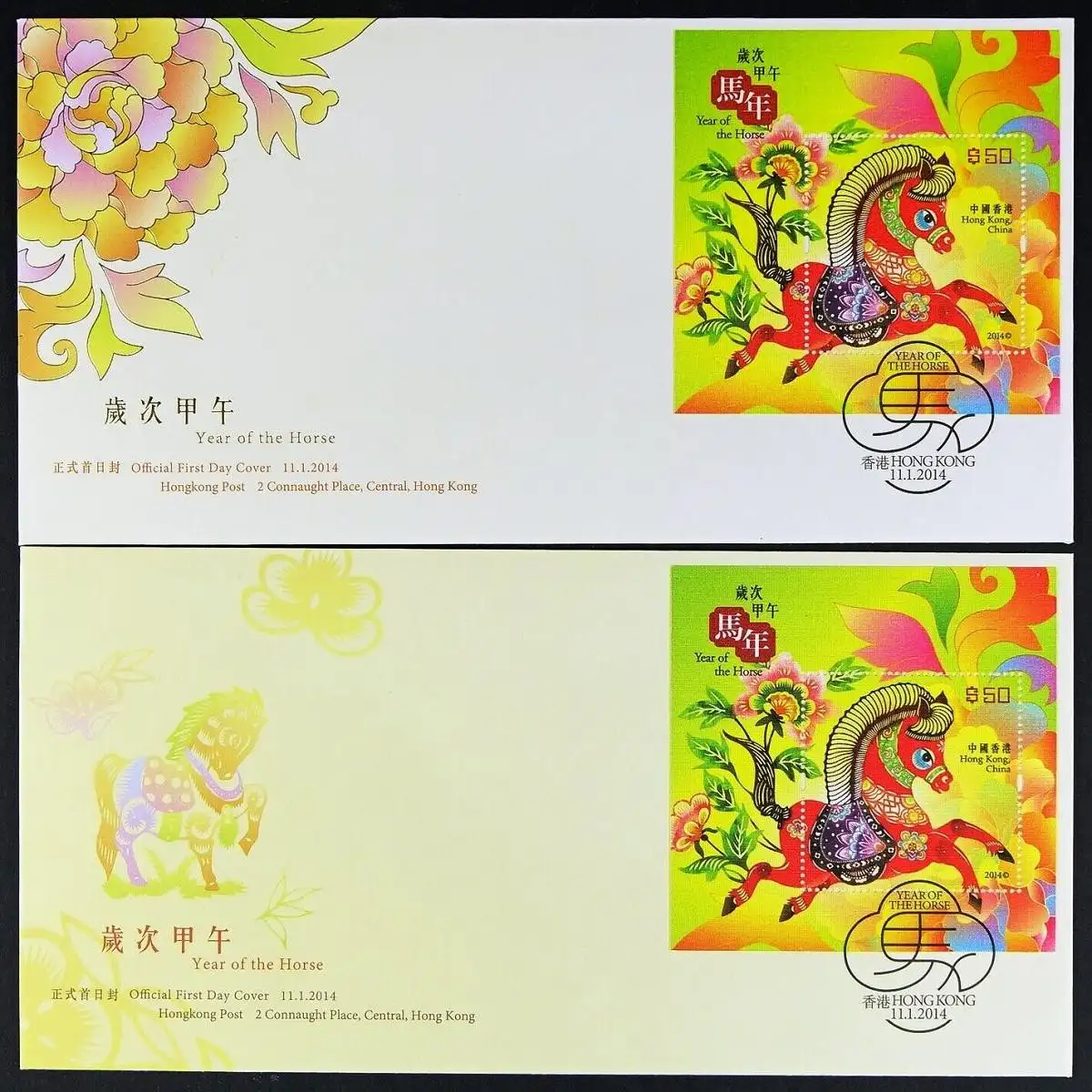 Hongkong 2014 Jahr des Pferdes Neujahr Seide Silk Block 269 FDC (2) Versionen