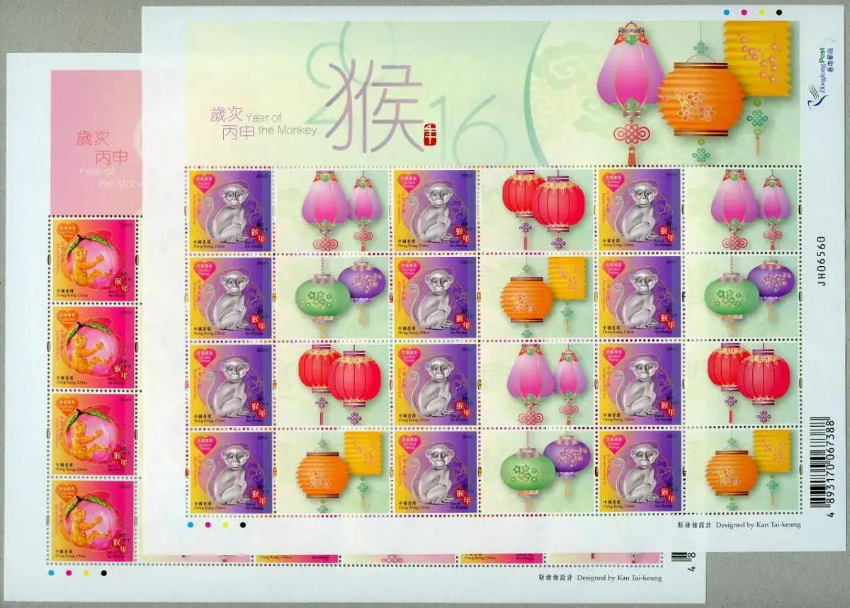 Hongkong 2016 Jahr des Affen Neujahr Monkey Local Mail 2018-2019 Kleinbogen MNH