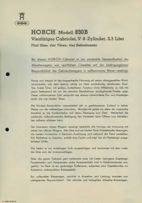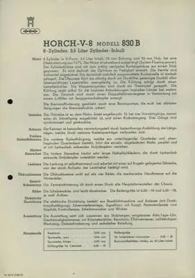 Horch V-8 Type 830 B 7 Datenblätter 7.1935