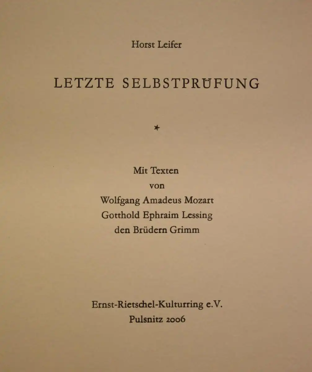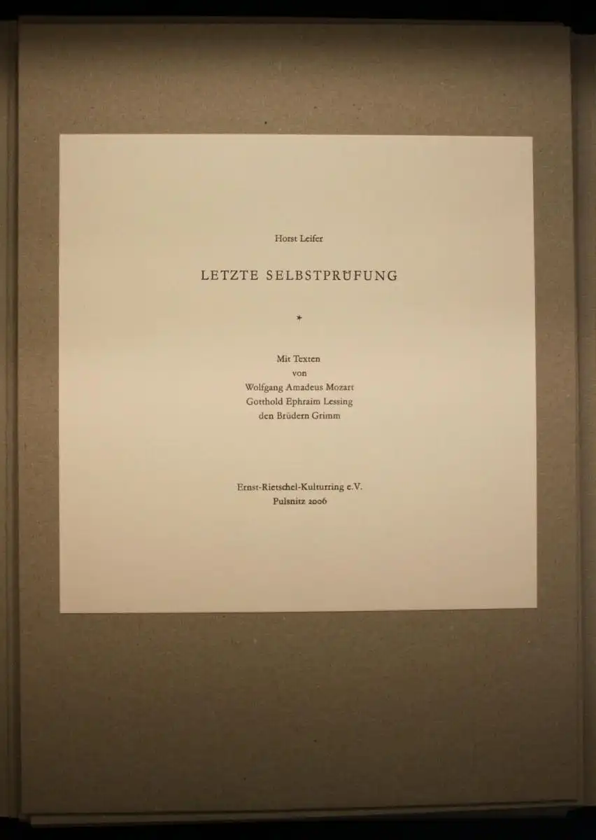 Horst Leifer Letzte Selbstprüfung 2006 mit Texten von Mozart, Lessing uw. sf