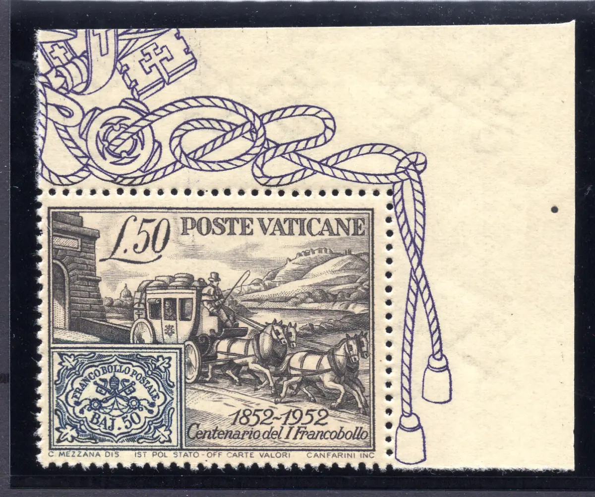 ** MNH - Hundertjahrfeier Päpstliche Briefmarke 50 l. Nr. 155/I gezähnt 13 x 12,3/4 aus Bogen mit Blattrand, perfekter Vollgummi - Selten für die Spezialisierung auf die Sammlung Euro-Katalog NC Cod.2125/WEB