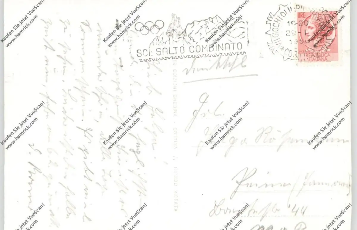 I 32043 CORTINA D'AMPEZZO, Panorama, Maschinen-Stempel OLYMPIA 1956, SCI SALTO COMBINATO