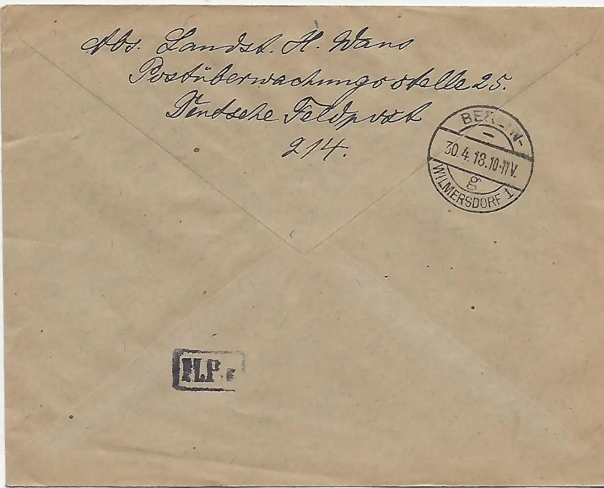 Für mehr Informationen siehe Scan: Absender: Postüberwachungsstelle 25 Deutsche Feldpost 214