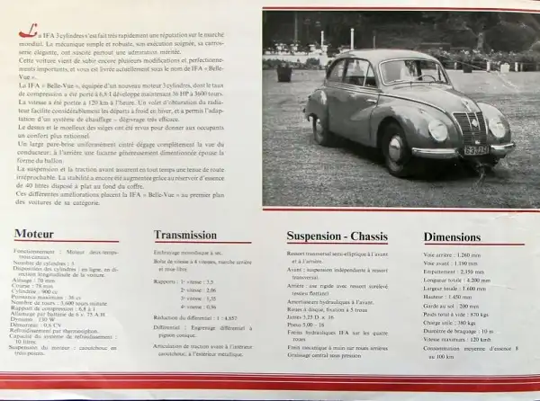 IFA F9 BelleVue 3 Zylinder Modellprogramm 1952 Automobilprospekt (1373)