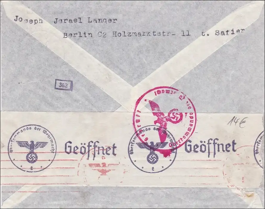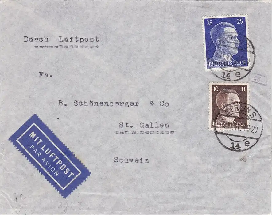 III. Reich: Luftpost Brief von Berlin nach St. Gallen/Schweiz 1941 - Zensur