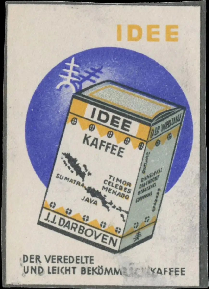 der veredelte und leicht bekömmliche Kaffee, Größe/Zustand: 6x4 , beschädigt, Original alte Reklamemarke die seinerzeit für die Werbung benutzt wurde