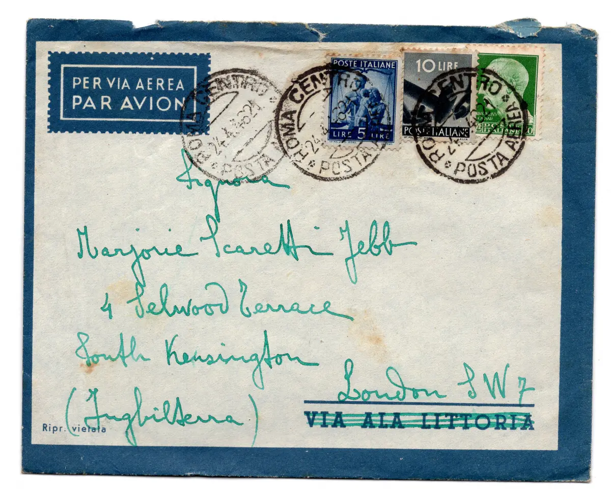 Umschlag - Imperiale Lire 20 Nr. 259 in Mischfrankatur mit Demokratischen 5 + 10 Lire (Nr. 555, 558) auf Luftumschlag von Rom nach London am 24.4.46 - im Tarif - Interessante späte Verwendung - Kat. euro 700 Cod. 225/17