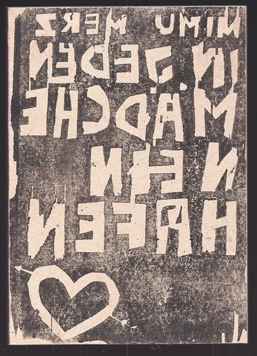 Bemerkungen: Künstlerbuch mit Graphic Novels der Künstlerin Mimu Merz. Einbandtitel in Spiegelschrift. Eines von 100 num. Exemplaren. "Taschenbuch anlässlich eines Abends für mimi im Rauchsalon im ehemaligen Cafe der Secession, Wien".
