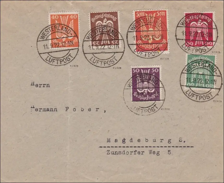 Infla: MiNr. ex 210-218 mit Stempel Westerland/Luftpost 1922