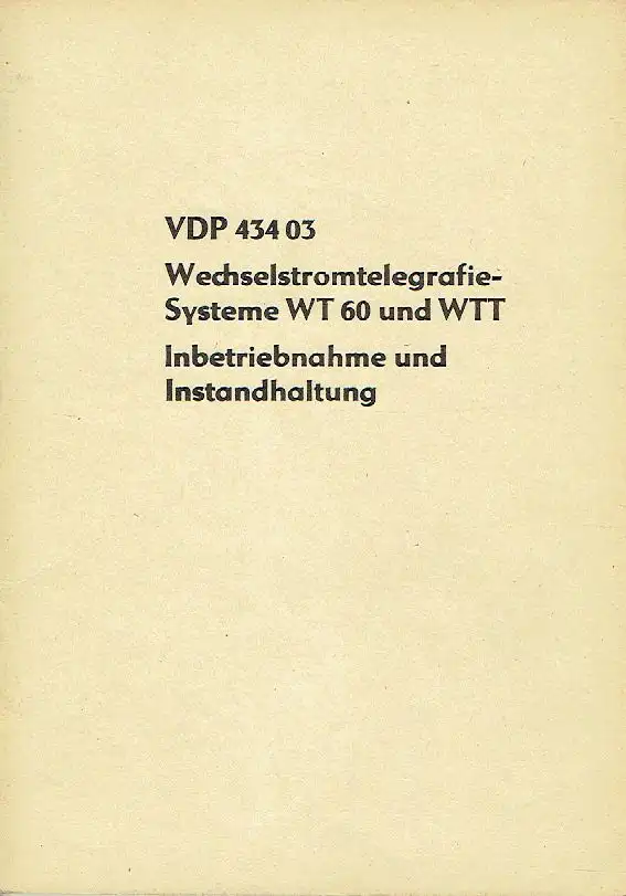 Institut für Post- und Fernmeldewesen, Berlin, Zentralstelle für Standardisierung der Deutschen Post: Wechselstromtelegrafie-Systeme WT 60 und WTT Inbetriebnahme und Instandhaltung.