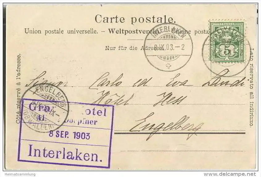 Interlaken - Verlag Photoglob Zürich - Eckknick oben links (E36437) gel. 1903