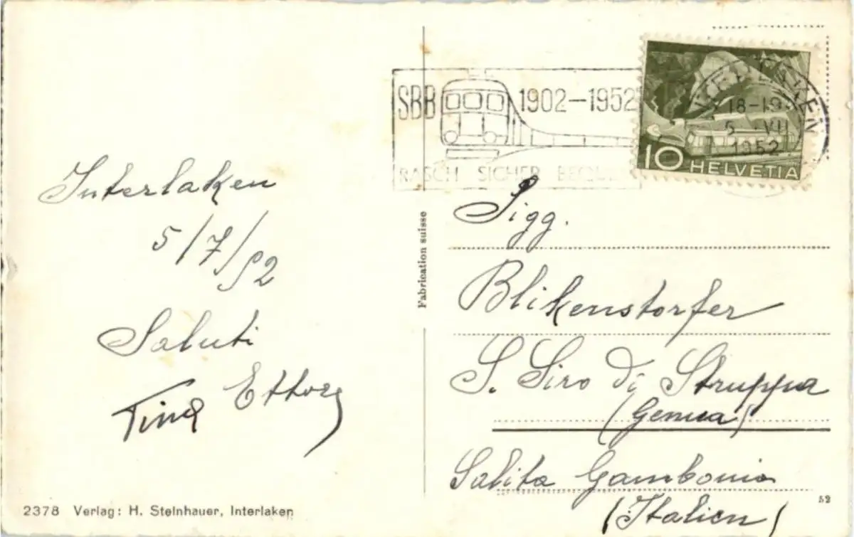 Danke. Alles Bestens. Können Sie mir allenfalls mitteilen, aus welchem Jahr die Postkarte stammt? Besten Dank.