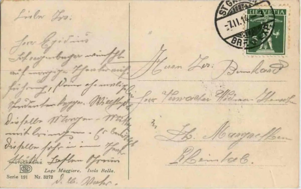 Danke. Alles Bestens. Können Sie mir allenfalls mitteilen, aus welchem Jahr die Postkarte stammt? Besten Dank.