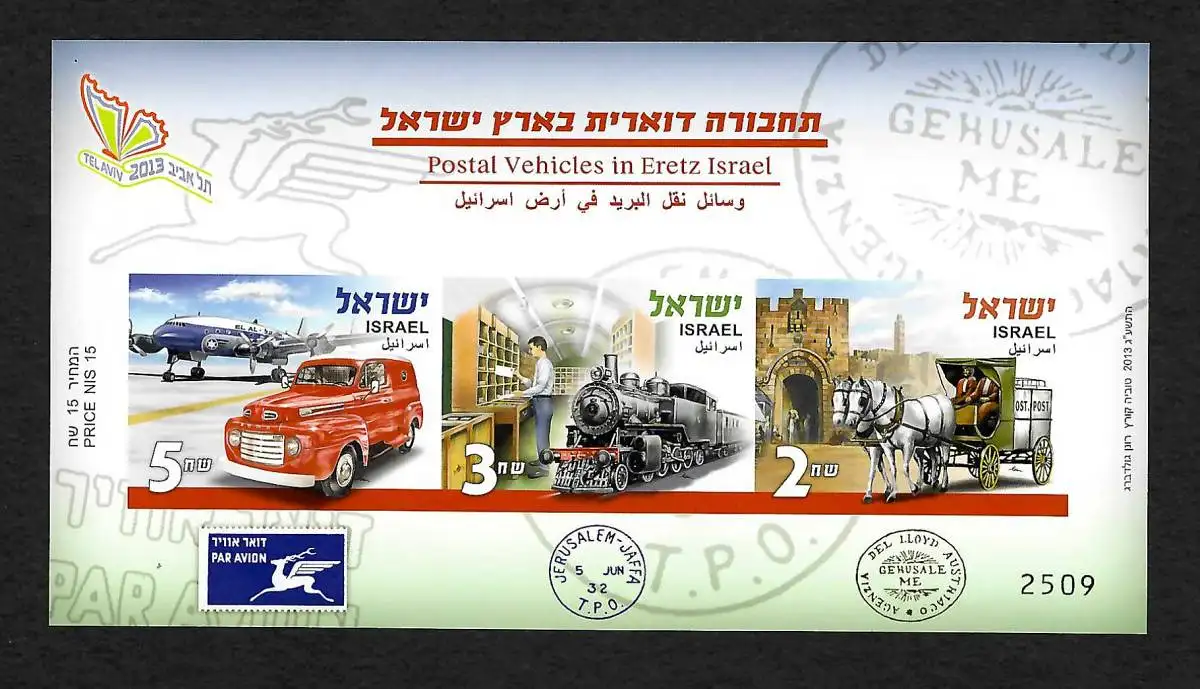 Israel Tel Aviv 2013: Block aus Ausstellerkatalog: Postal Vihicles in Eretz, mnh