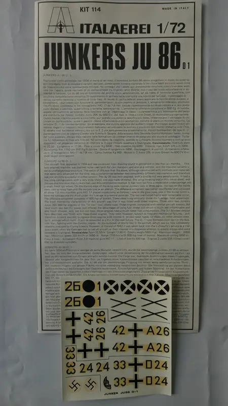 Italeri/Italaerei Junkers Ju86 D1 German Bomber-1:72-No 114-Modellflieger-OVP-0605
