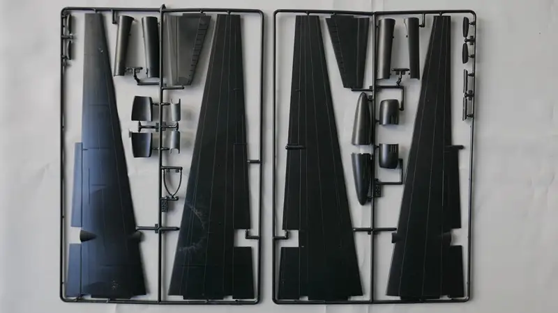 Einzelteile (Plastikbauteile) sind noch am Rahmen fixiert, 2 Bauteile haben sich vom Rahmen gelöst.