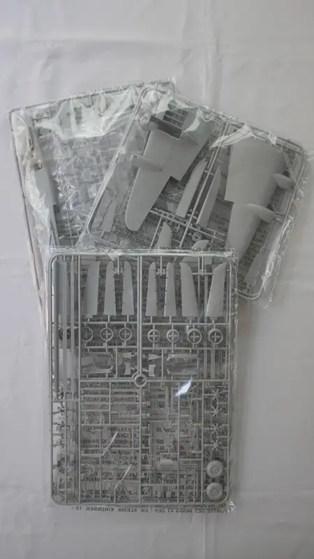 Einzelteile (Plastikbauteile) befinden sich in versiegelten Sichthüllen.