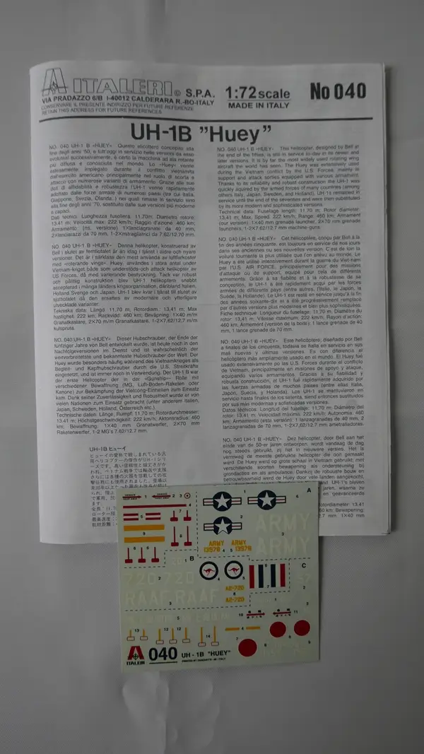 Italeri, UH-1B "Huey"-1:72-040-Modellflieger-Hubschrauber-OVP-0408