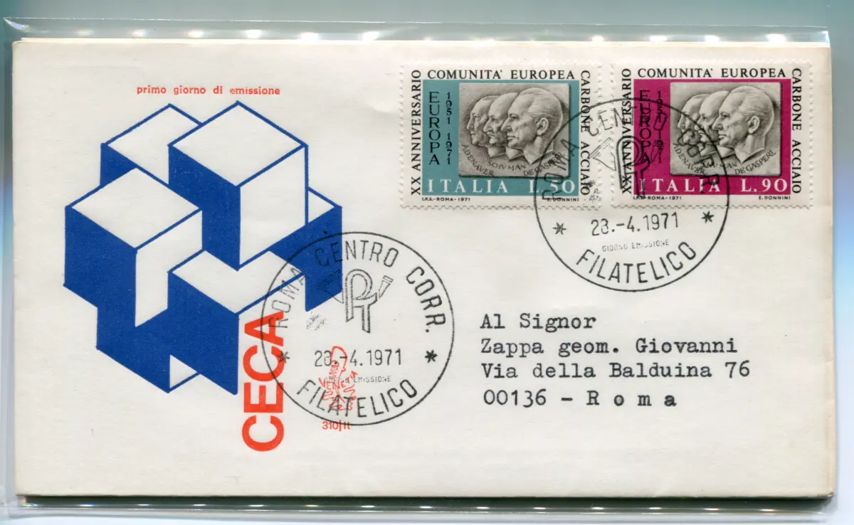 Italia FDC Venetia 1971 C.E.C.A. gereist nach Italien Italien 1971 C.E.C.A. auf Reiseumschlag nach Italien mit Annullierung Annullo Roma Philatelico Cod. 945/Venetia