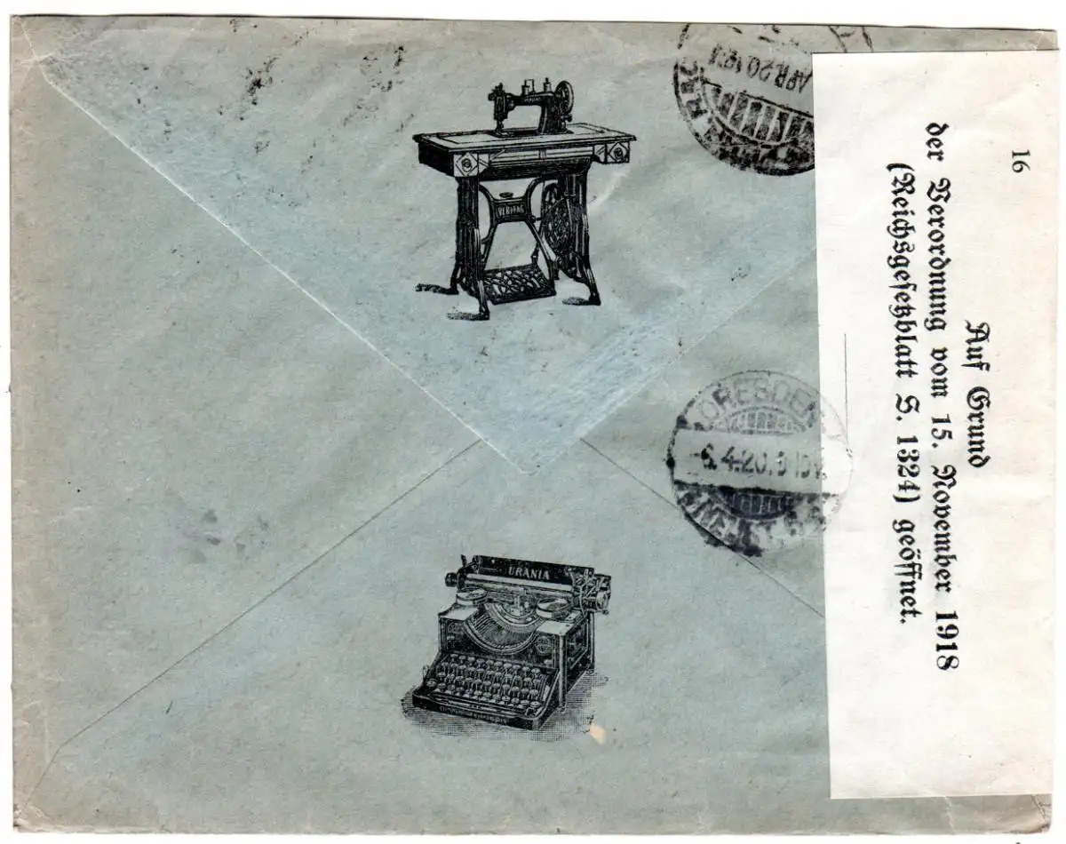 Firmen-Reko Brief m. rücks. Dresden Ank.Stpl.