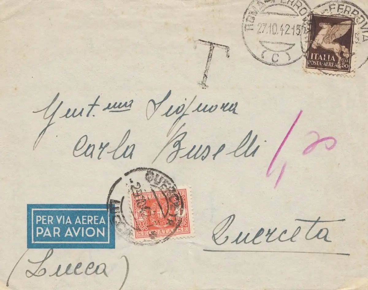 Italien: 1942: Roma Ferrovia nach Lucea - par Avion