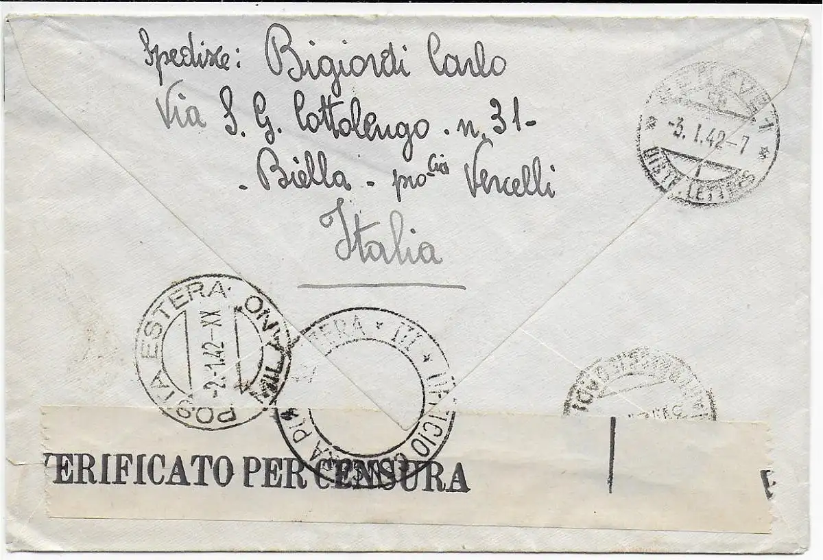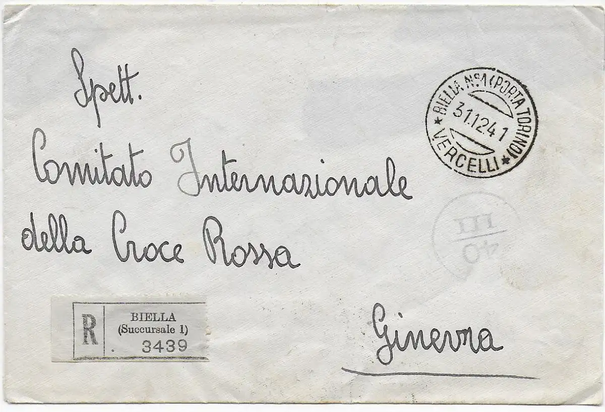 Italien: Biella Torino, Vercelli, Einschreiben, Kgf, Pow RedX, 1941/42