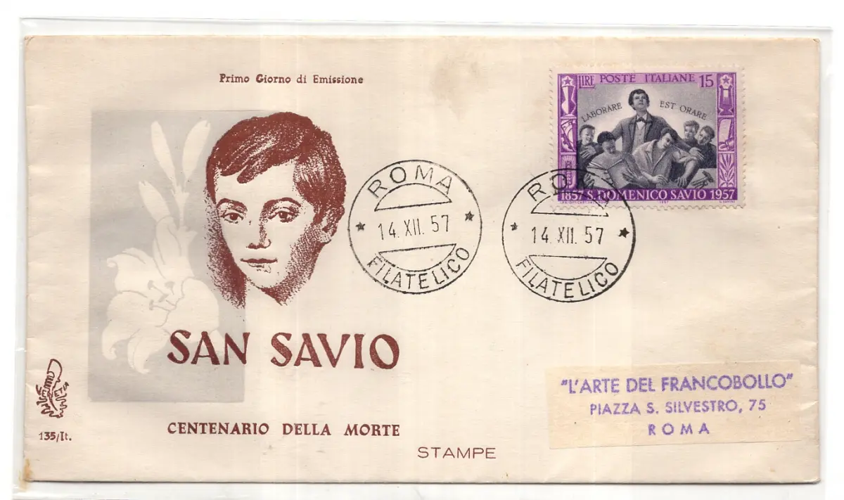 Italien FDC Venetia 1957 Domenico Savio nicht gereist