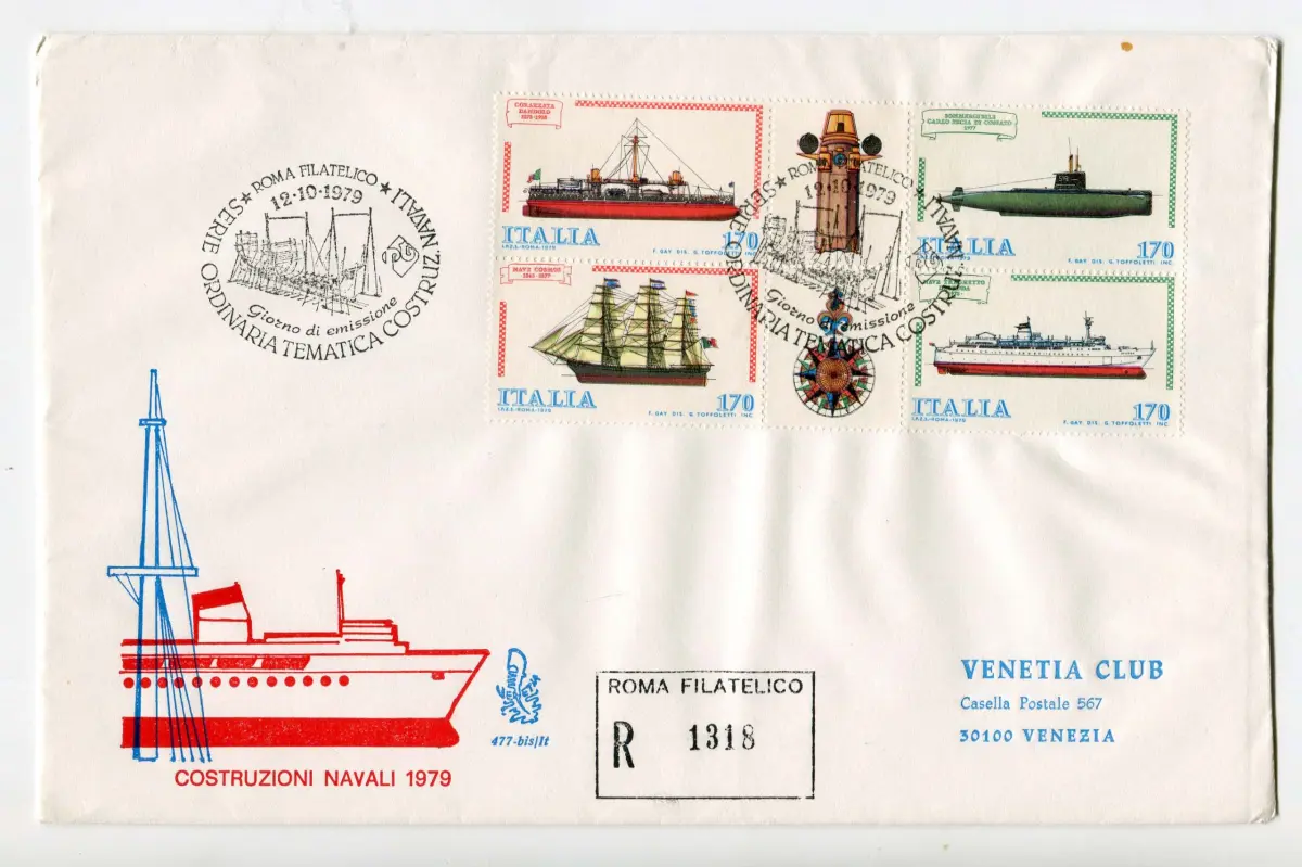 Italien FDC Venetia 1979 Kompletter Jahrgang Italien 1979 Kompletter Jahrgang auf Umschlag FDC 36 Umschläge (Nr. 460BIS, 462BIS und 465BIS, 469 BIS), Teil gereist Einschreiben mit Anreiseannullierung - in gutem Zustand - Cod. 367/Venetia