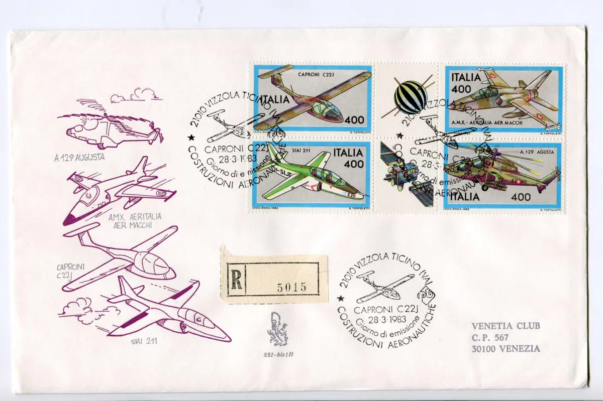 Italien FDC Venetia 1983 Kompletter Jahrgang Italien 1983 Kompletter Jahrgang auf Umschlag FDC 37 Umschläge (Nr. 560BIS), Teil gereist Einschreiben mit Anreise - guter Zustand - Cod. 371 / Venetien