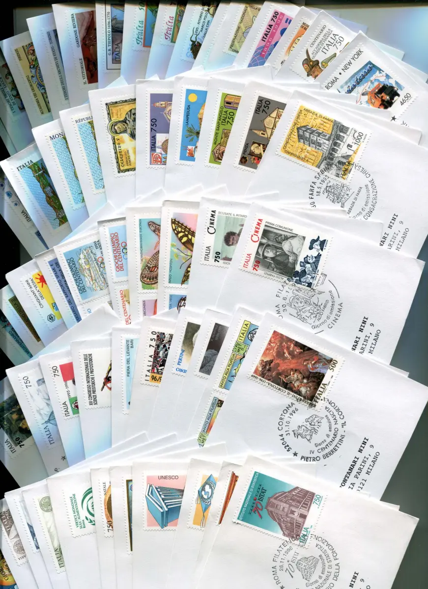 Italien FDC Venetia 1996 Kompletter Jahrgang Italien 1996 Kompletter Jahrgang auf Umschlag FDC 56 Umschläge, inkl. Gemeinschaftsausgaben RAMOGE - in gutem Zustand - Cod. 388/Venetia
