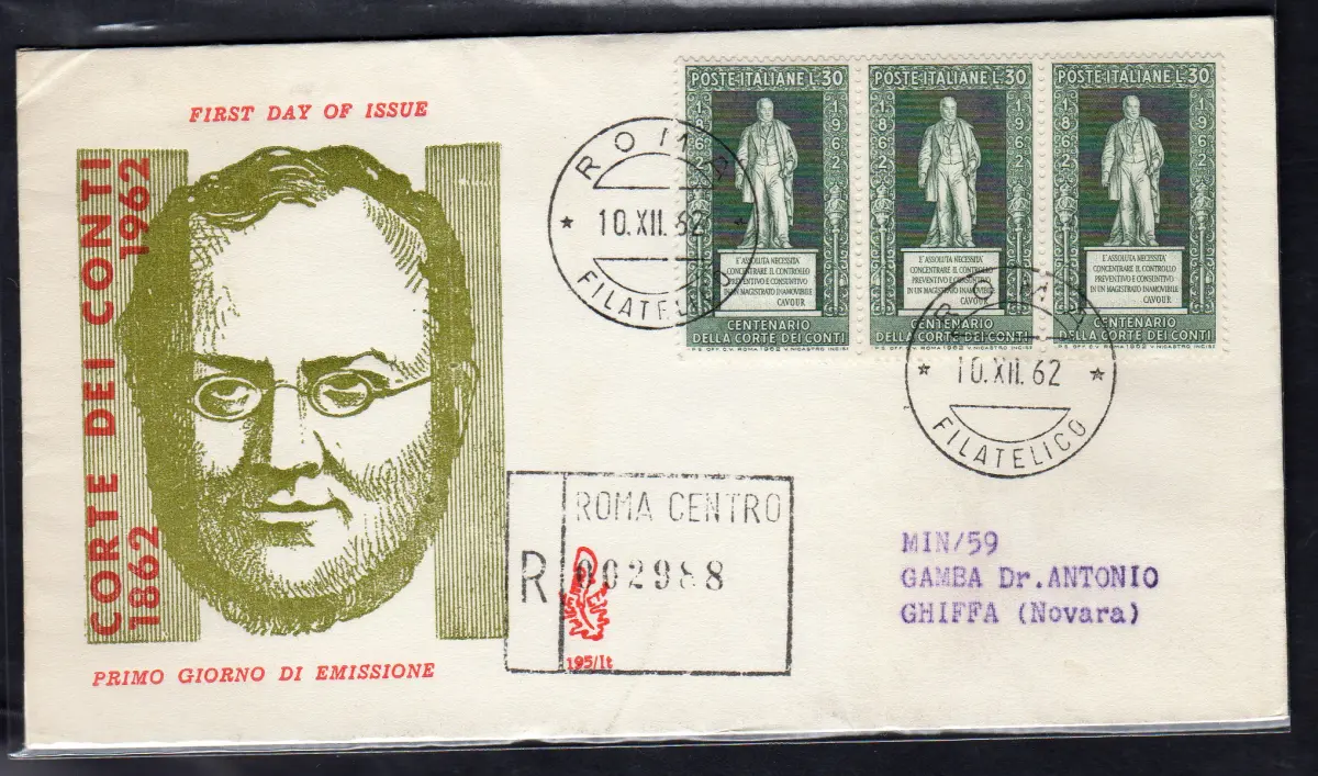 Italien FDC Venetia 1962 Centenario Corte dei Conti Dreierstreifen gereist Racc. für Italien Italien Italien 1962 Centenario Corte dei Conti Dreierstreifen auf FDC Umschlag gereist Racc. für Italien mit Annullierung der Ankunft Cod. 541/Venetien