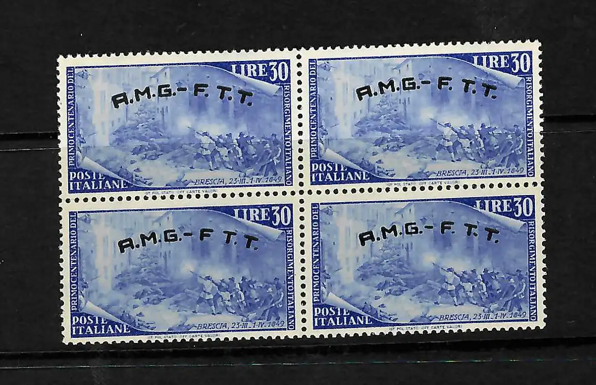 Italien: Kampf in Brescia, Viererblock, Abart: Fehlender Punkt, Triest, **