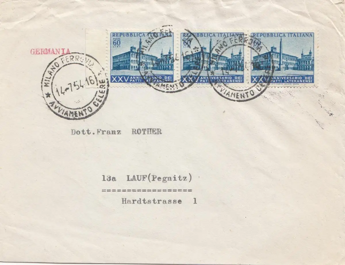 Italien: Milano 1954 nach Lauf/Pegnitz