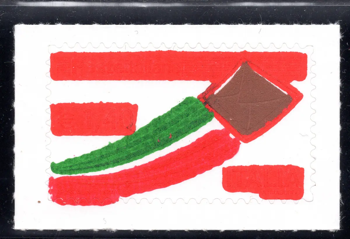 MNH Vollgummi - Italienische Post Euro 1,40 Flugbrief Nr. 3103 mit stark eingefärbtem Rot-, Grün- und Golddruck aufgrund übermäßiger Tintenabgabe am Druckzylinder - Selten Cod. 886/13