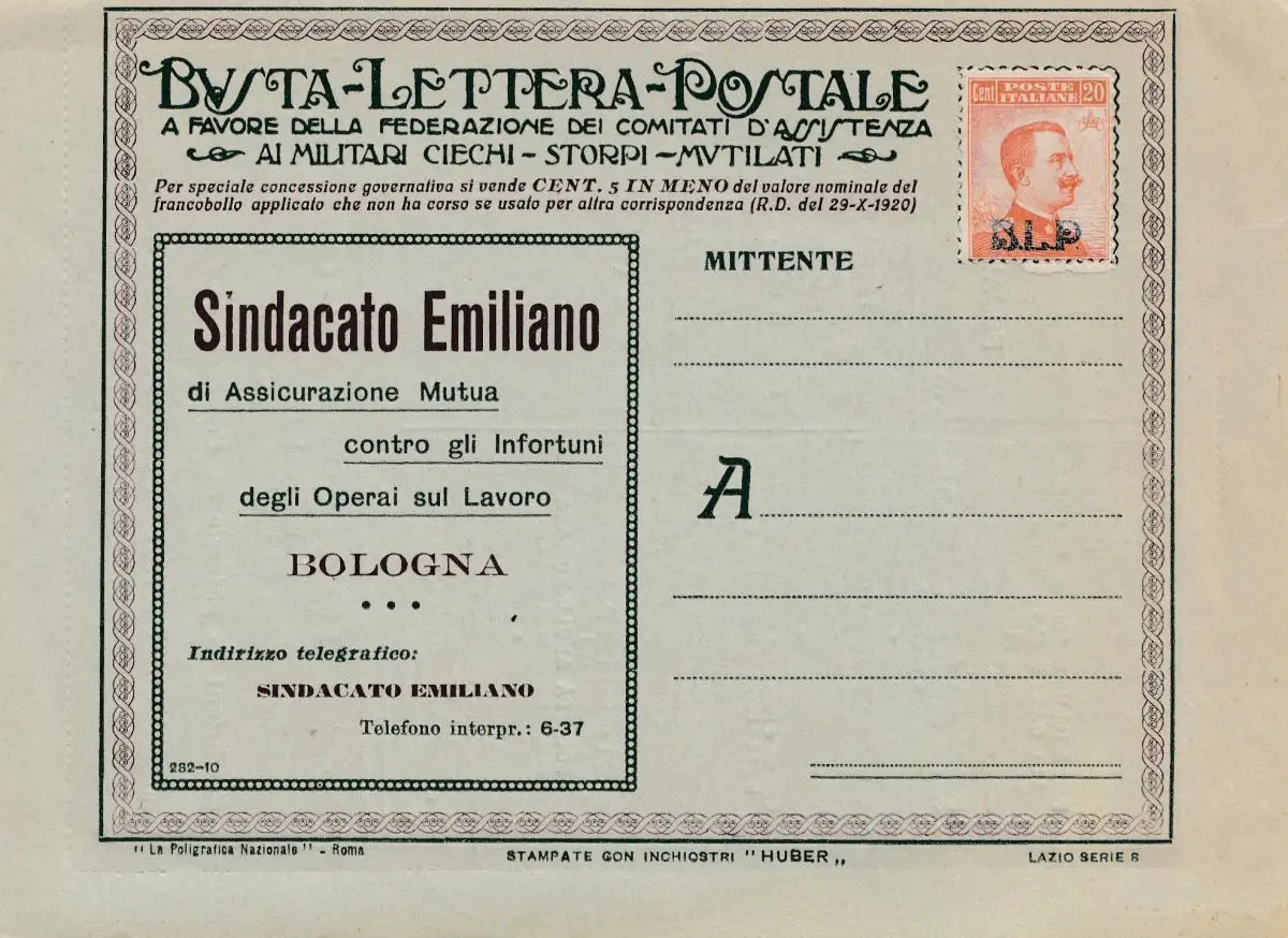 Italienischer Brief Bologna Militari Werbung innen, ungebraucht mit Faltblatt