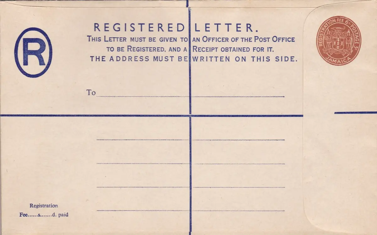 JAMAIKA, Einschreiben 6 c. NEU AM Lot 90