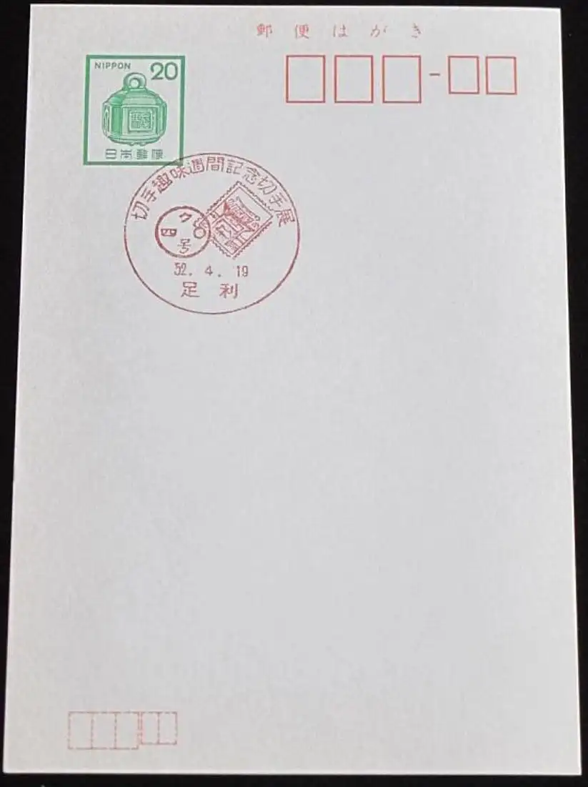 JAPAN GANZSACHE POSTKARTE mit Sonderstempel 19.04.1977 BRIEFMARKENAUSSTELLUNG 52.04.19