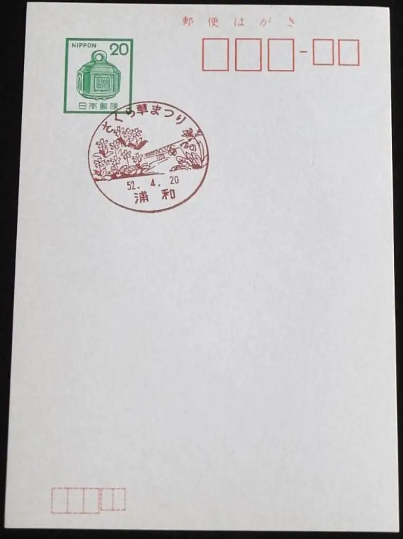 JAPAN GANZSACHE POSTKARTE mit Sonderstempel 20.04.1977 BRIEFMARKENAUSSTELLUNG 52.04.20
