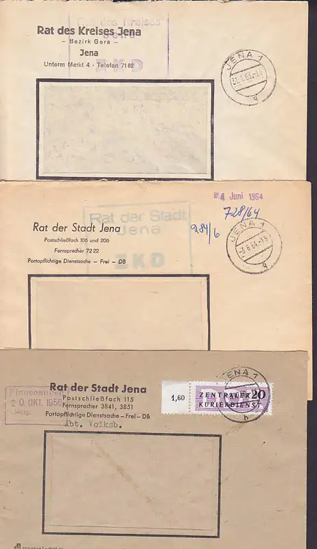 JENA Rat der Stadt, des Keises je auf ZKD-Brief, dabei Vordruck-Bf Portopflichtige Dienstsache - Frei - DB