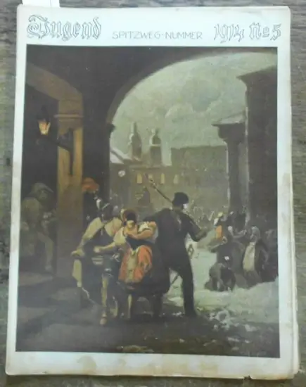 4°. 32,8 x 24,8 cm. Originalheft mit farbigem Titelblatt nach Spitzweg. Seiten 122 - 150 der fortlaufenden Paginierung mit 5 Farbabb. nach Spitzweg: "Gefährdete Post" / " Am Petersturm"/ "Wandernde Komödianten " / "Nil mali hic intret" und "Bewahrt das Feuer und das Licht" und mit zahlr. s/w Illustrationen; Mit Anzeigenteil . Heftung des Umschlags fast gelöst, teilweise fleckig und randgegilbt. Sonst noch gutes Exemplar