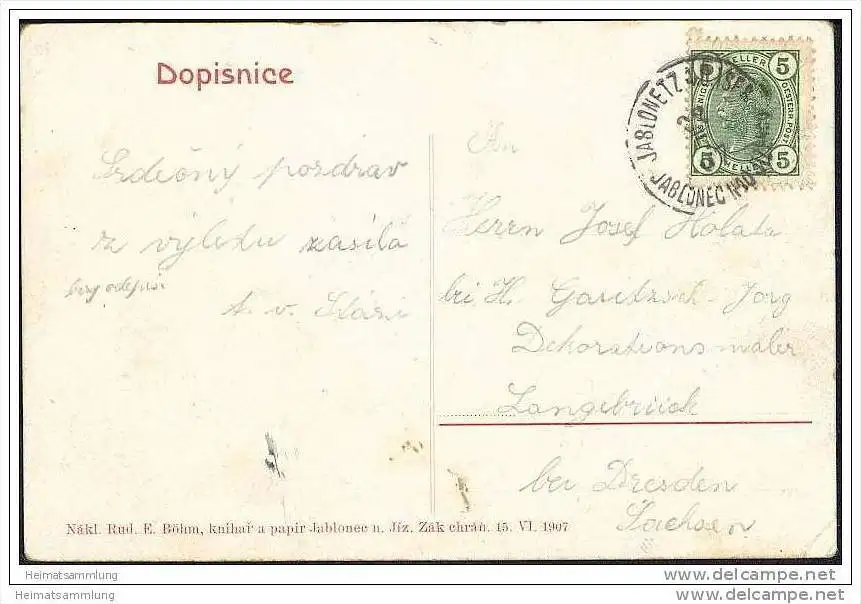 Jablonec nad Jizerou v Cechach - Krkonose - Verlag Rud. E. Böhm Jablonec nad Jizerou 1907 - Gebrauchsspuren (G16945) gel. 1907